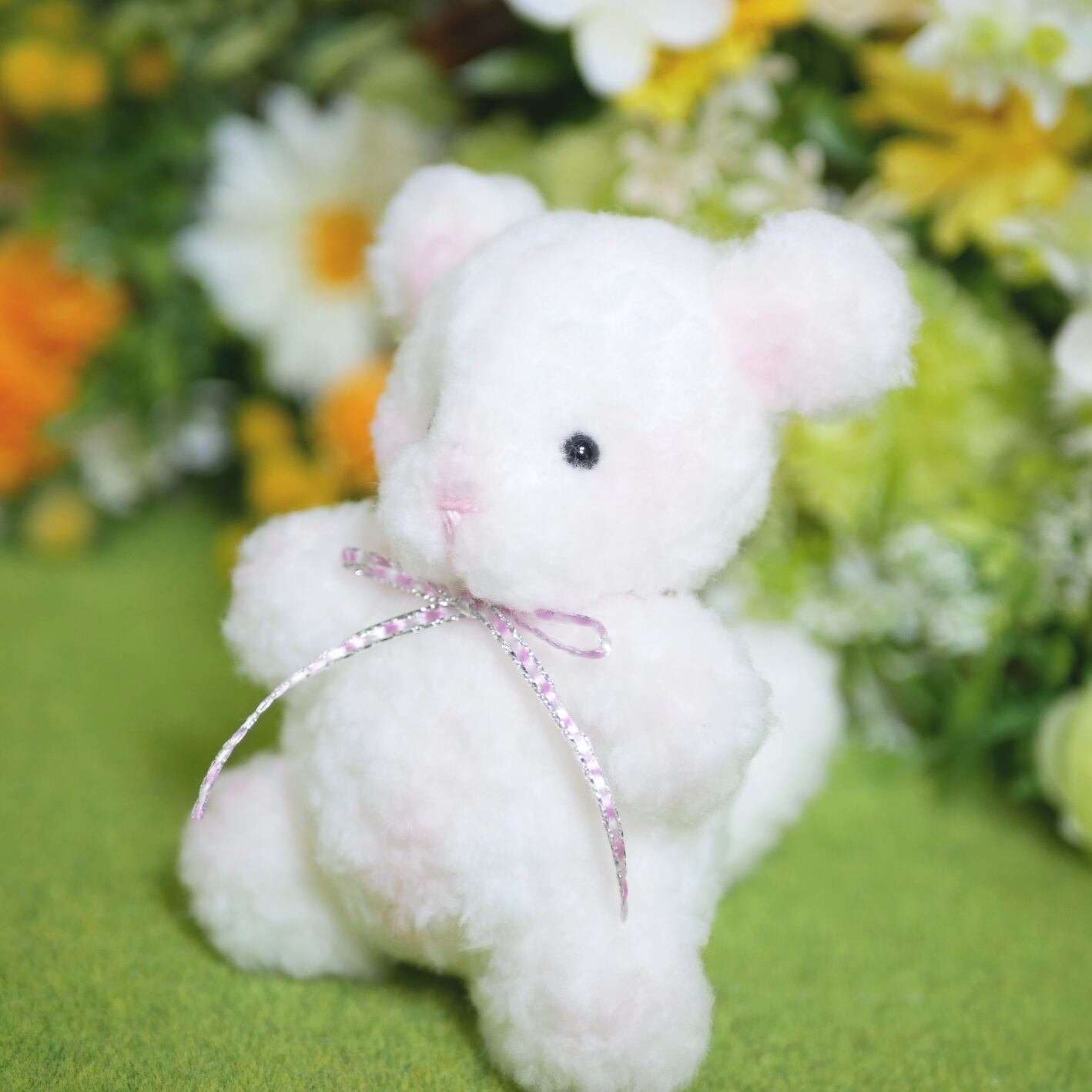 真っ白なもこもことしたボア生地を使い、マシュマロのようなチンチラちゃんをお作りしました。