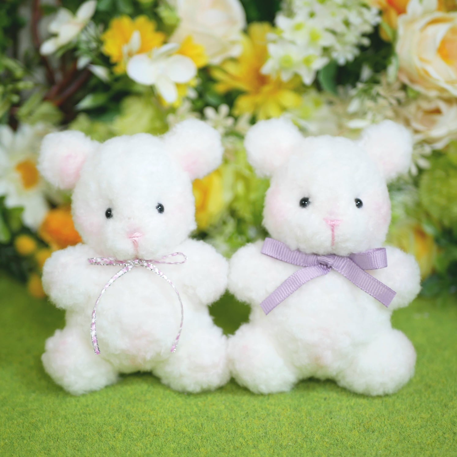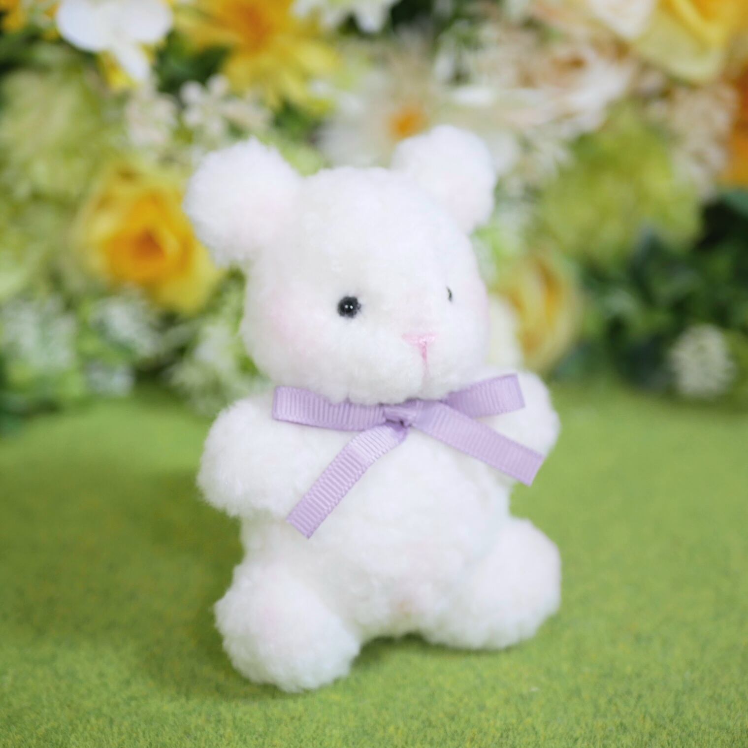 真っ白なもこもことしたボア生地で、マシュマロのようなチンチラちゃんをお作りしました。