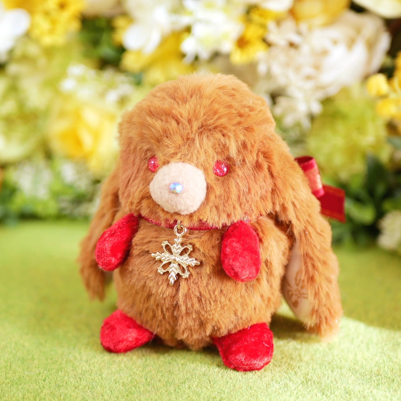 素材…ファー生地、ポンポンパーツ、ラインストーン、オリジナルグラスアイ、綿、プラスチックペレット、リボン、チャーム