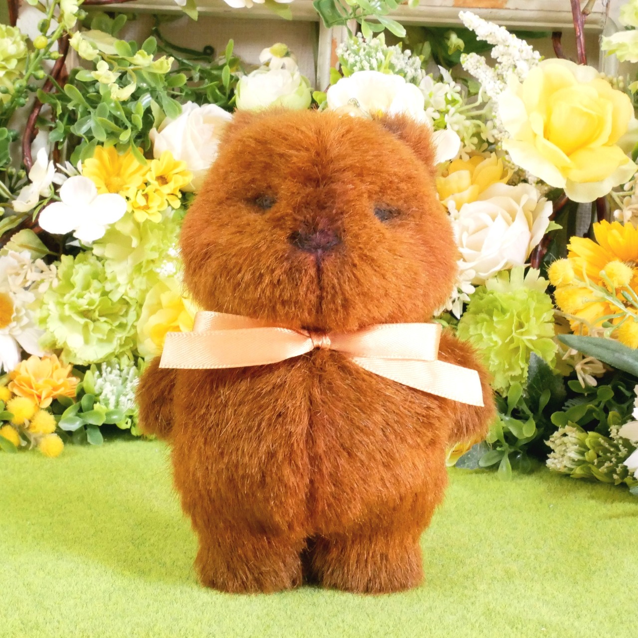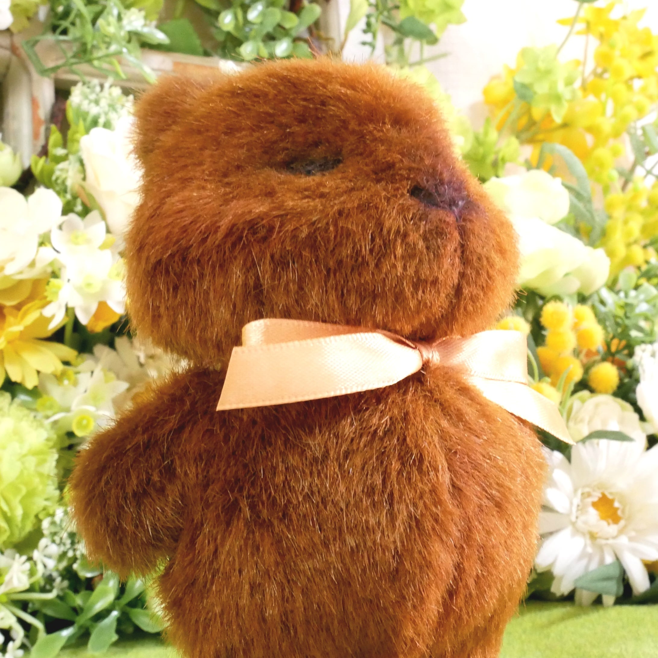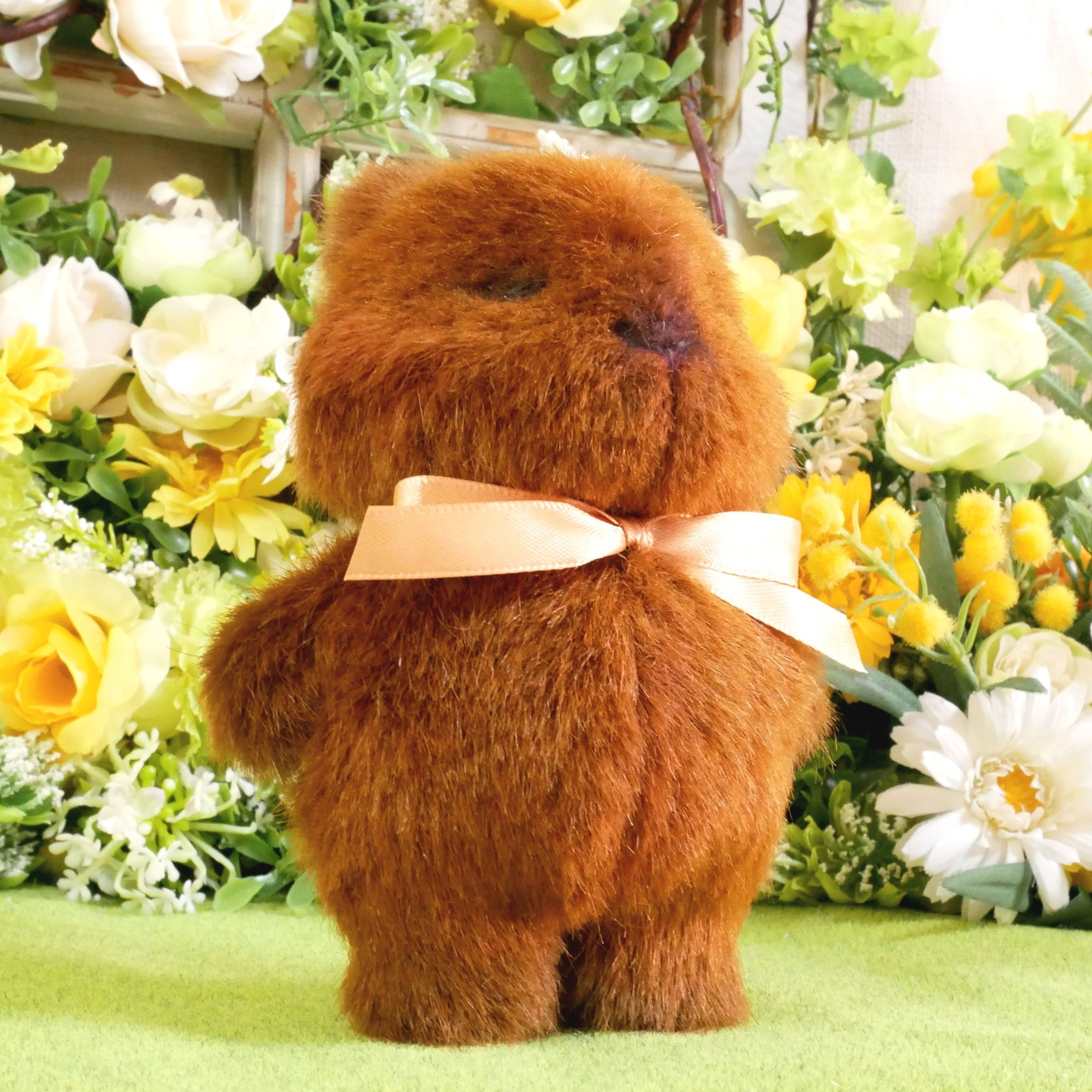 ブラウンのボア生地で、カピバラのもっちりぬいぐるみをお作りしました。