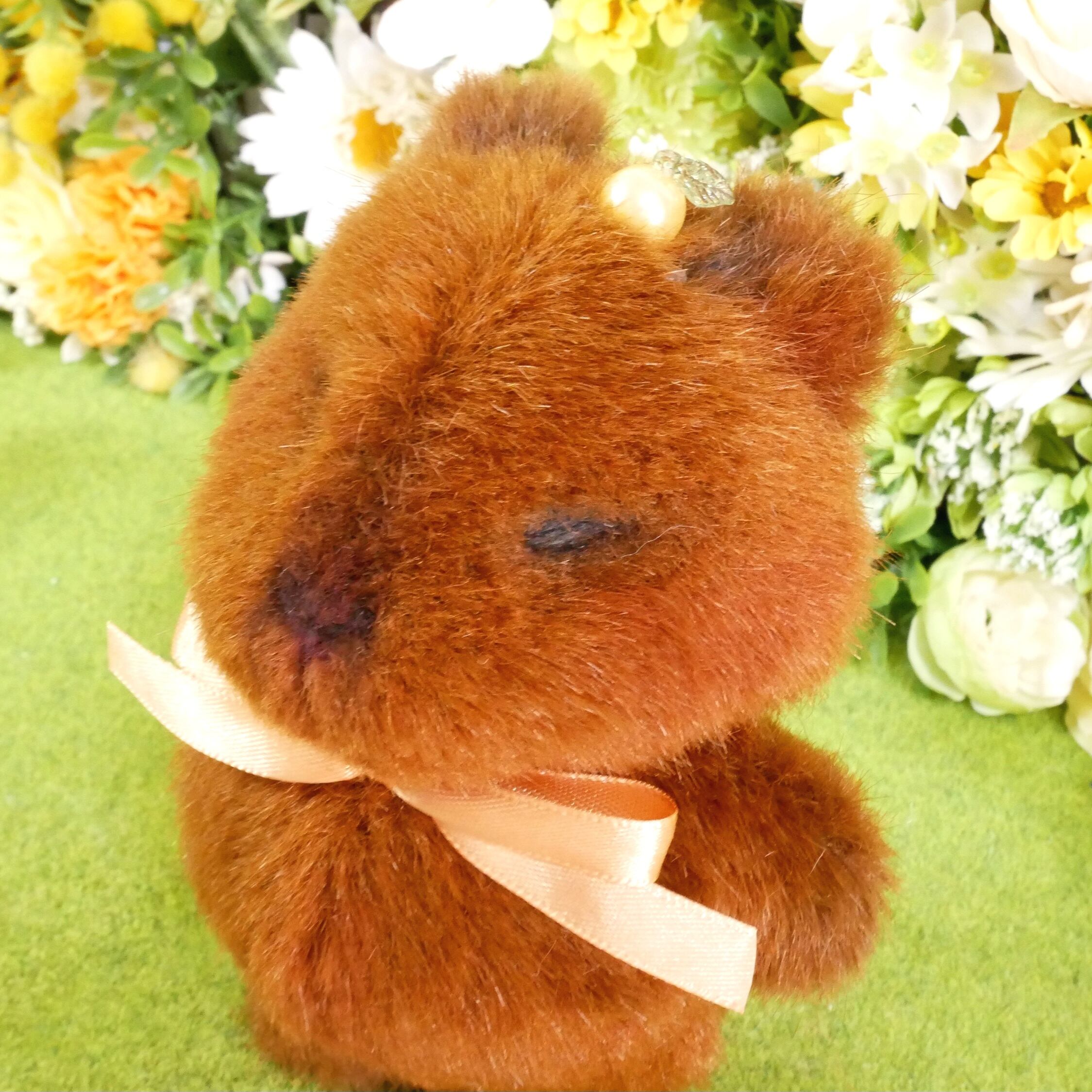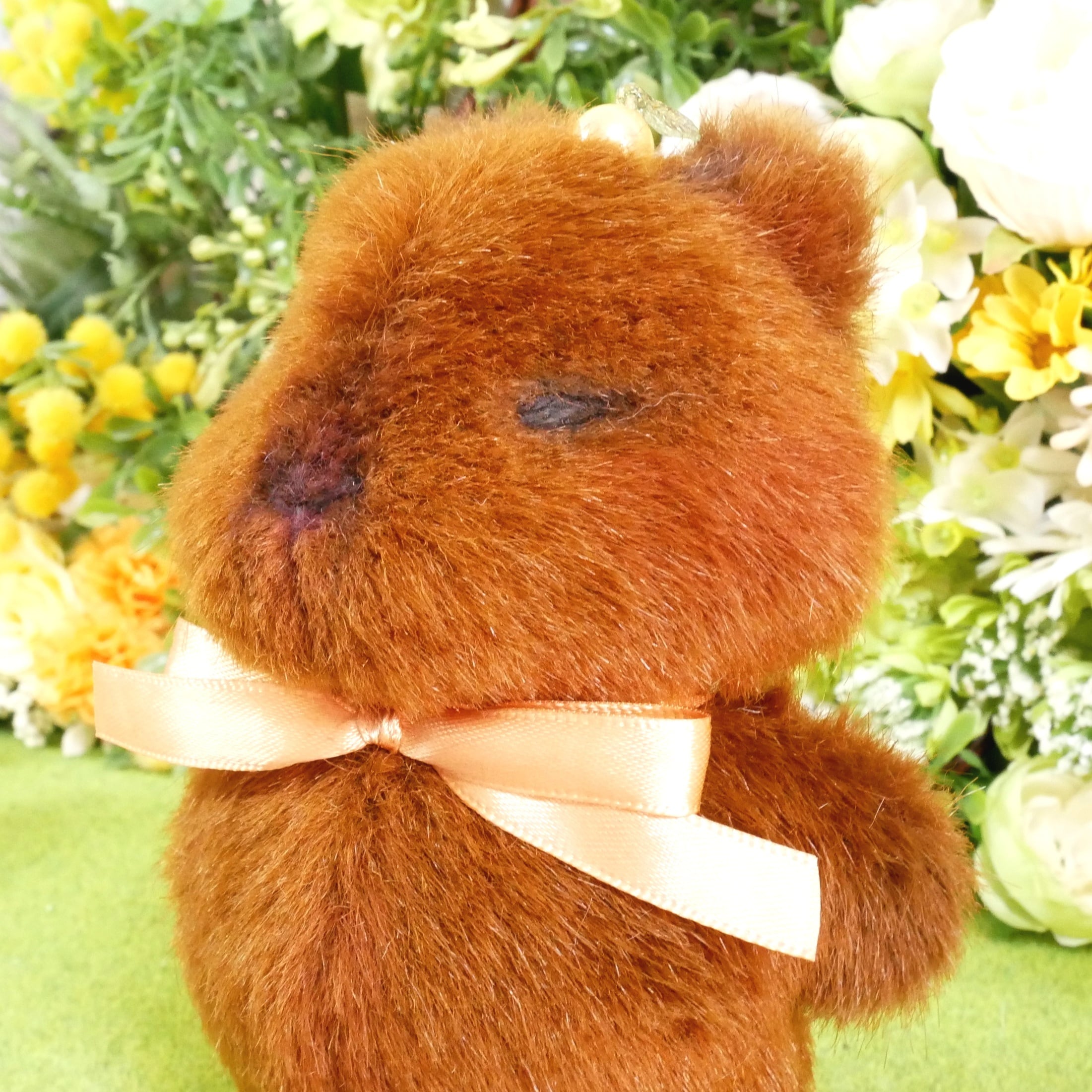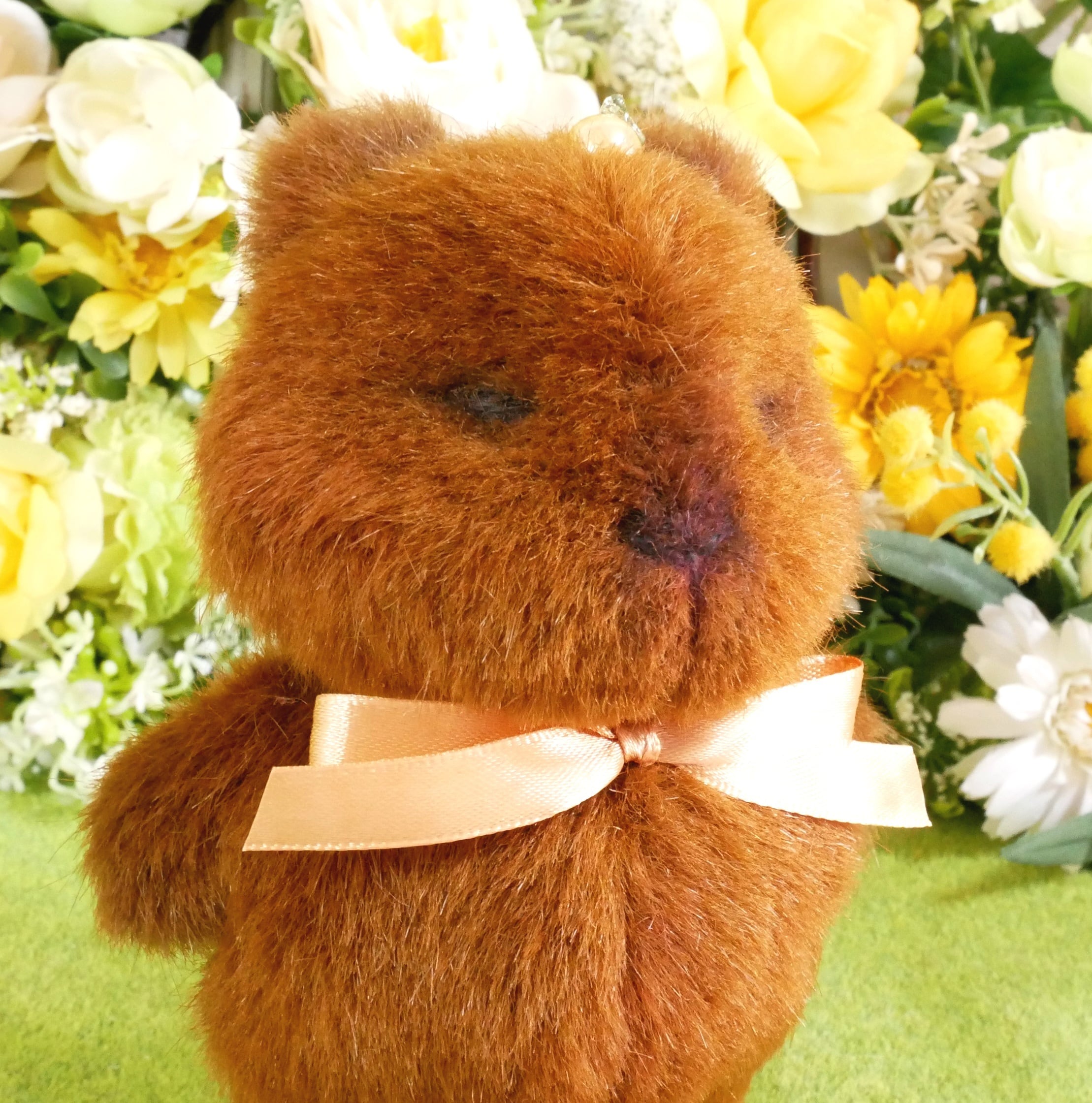 ブラウンのボア生地で、カピバラのもっちりぬいぐるみをお作りしました。