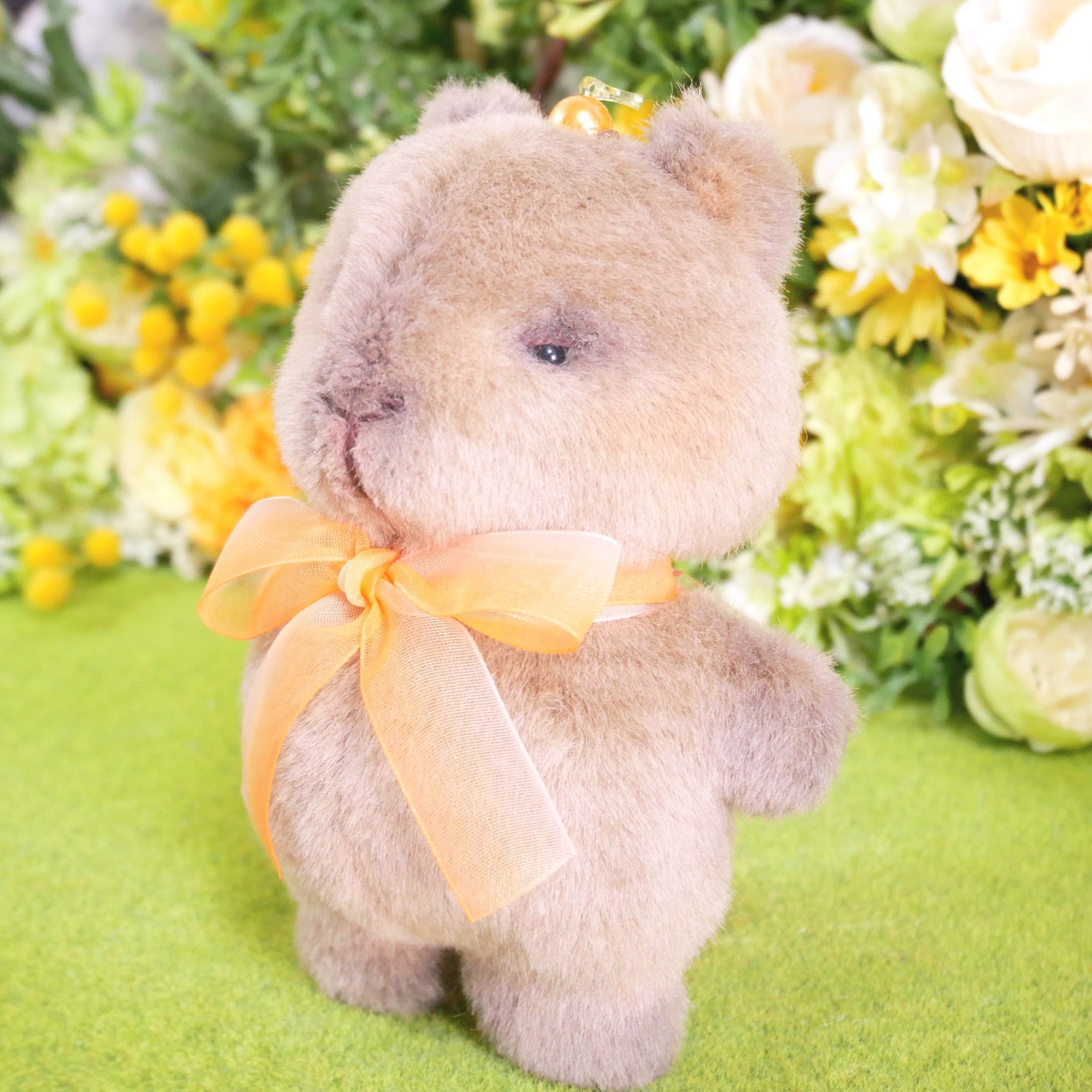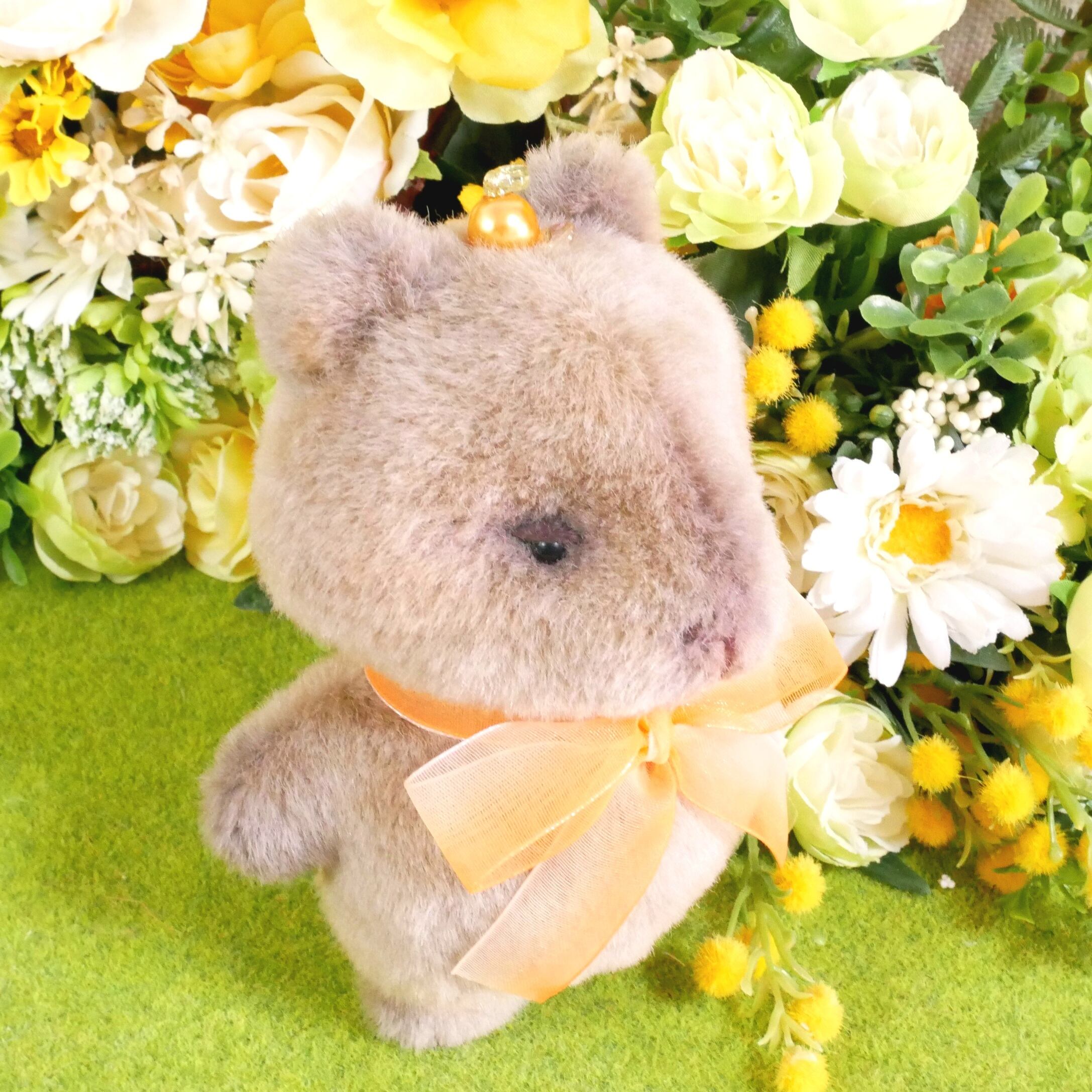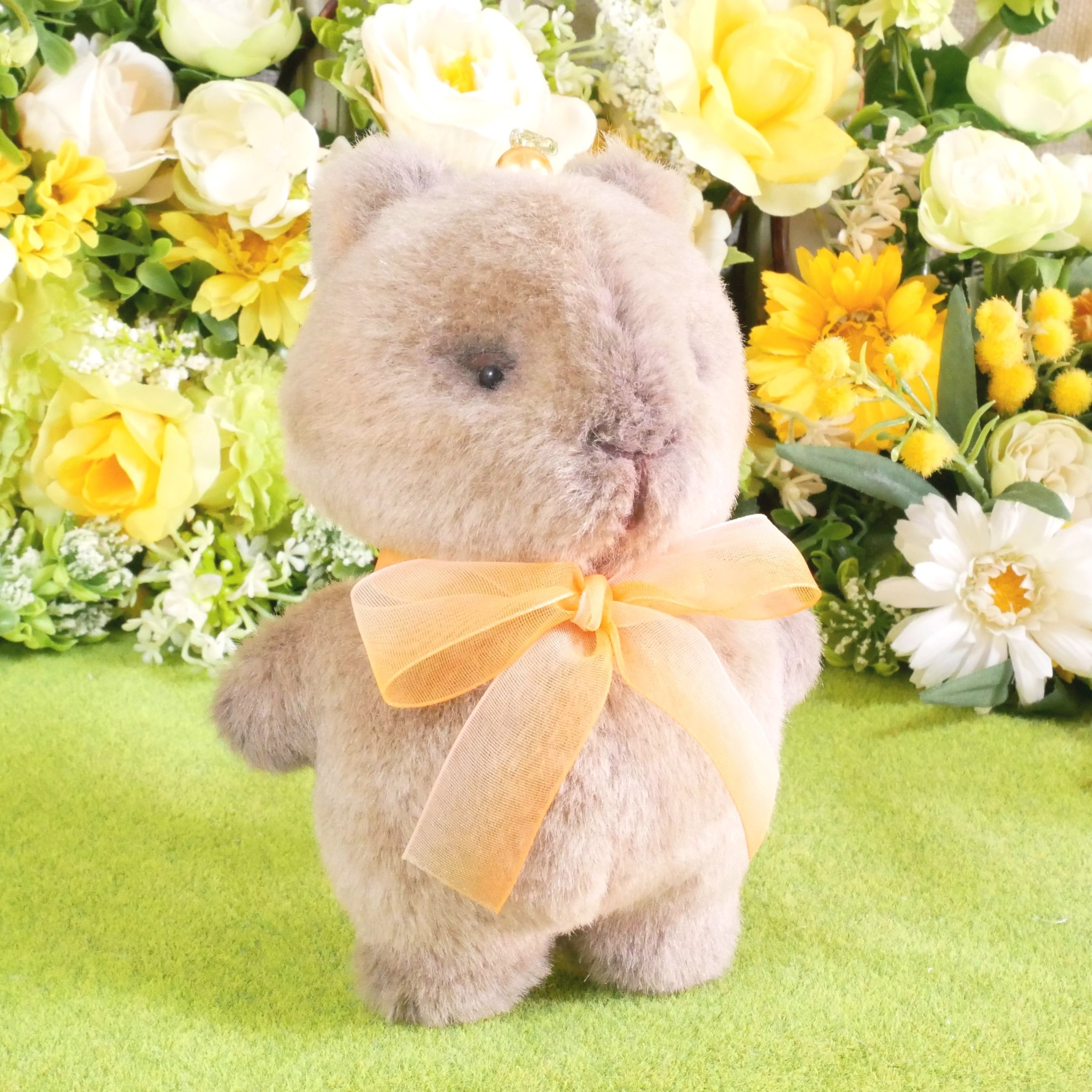 リアルな毛色をイメージしたグレー系ブラウンのボア生地で、カピバラのもっちりぬいぐるみをお作りしました。