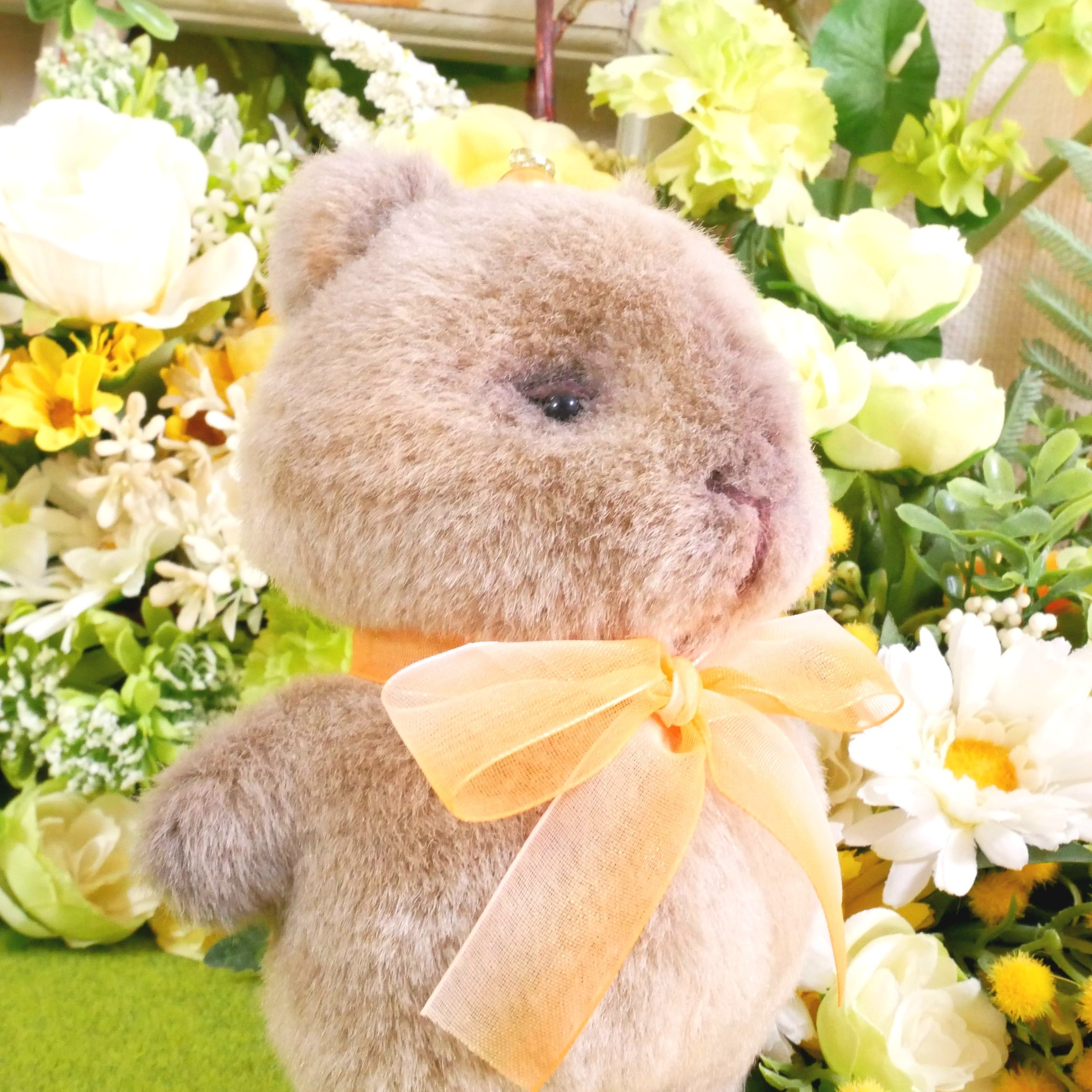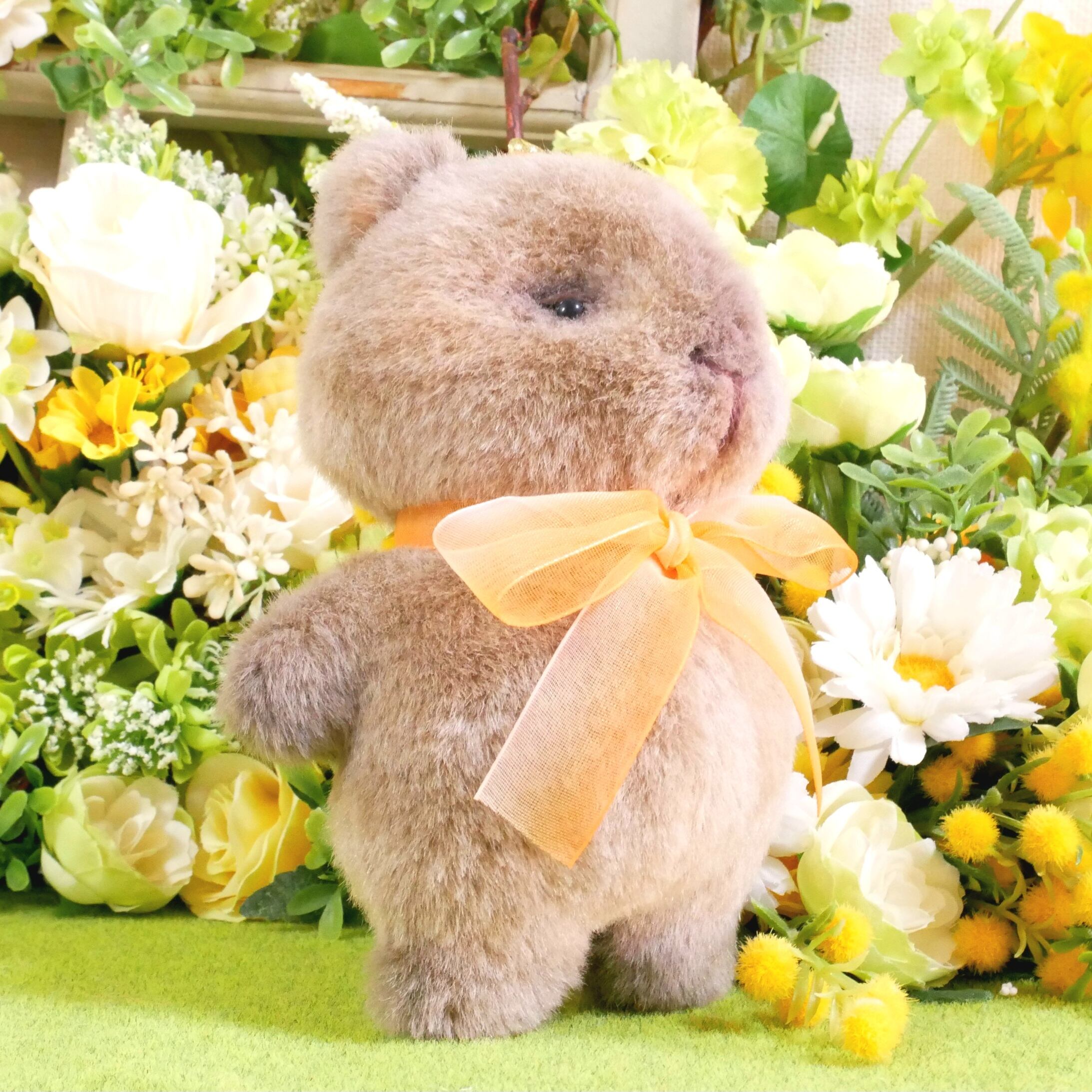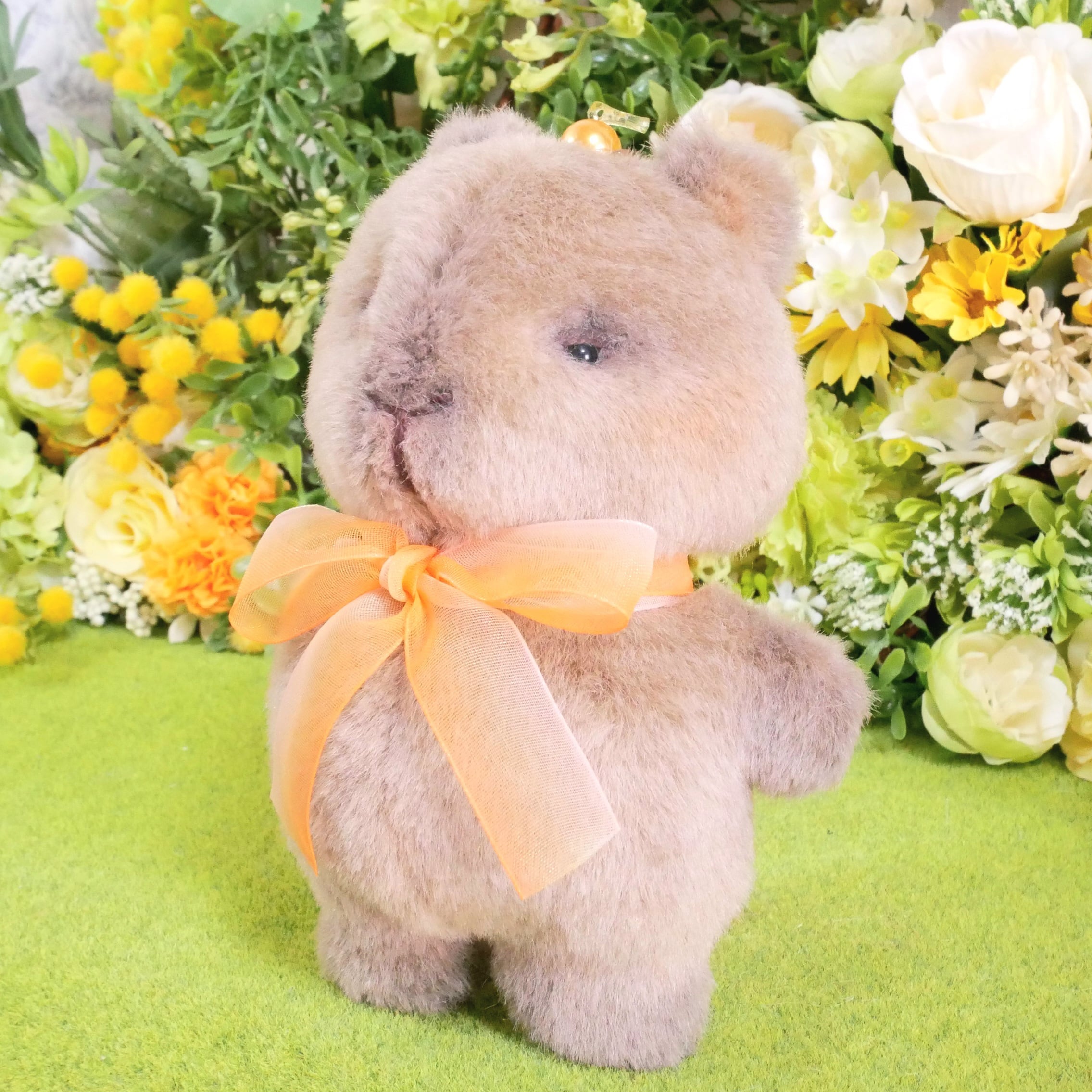リアルな毛色をイメージしたグレー系ブラウンのボア生地で、カピバラのもっちりぬいぐるみをお作りしました。