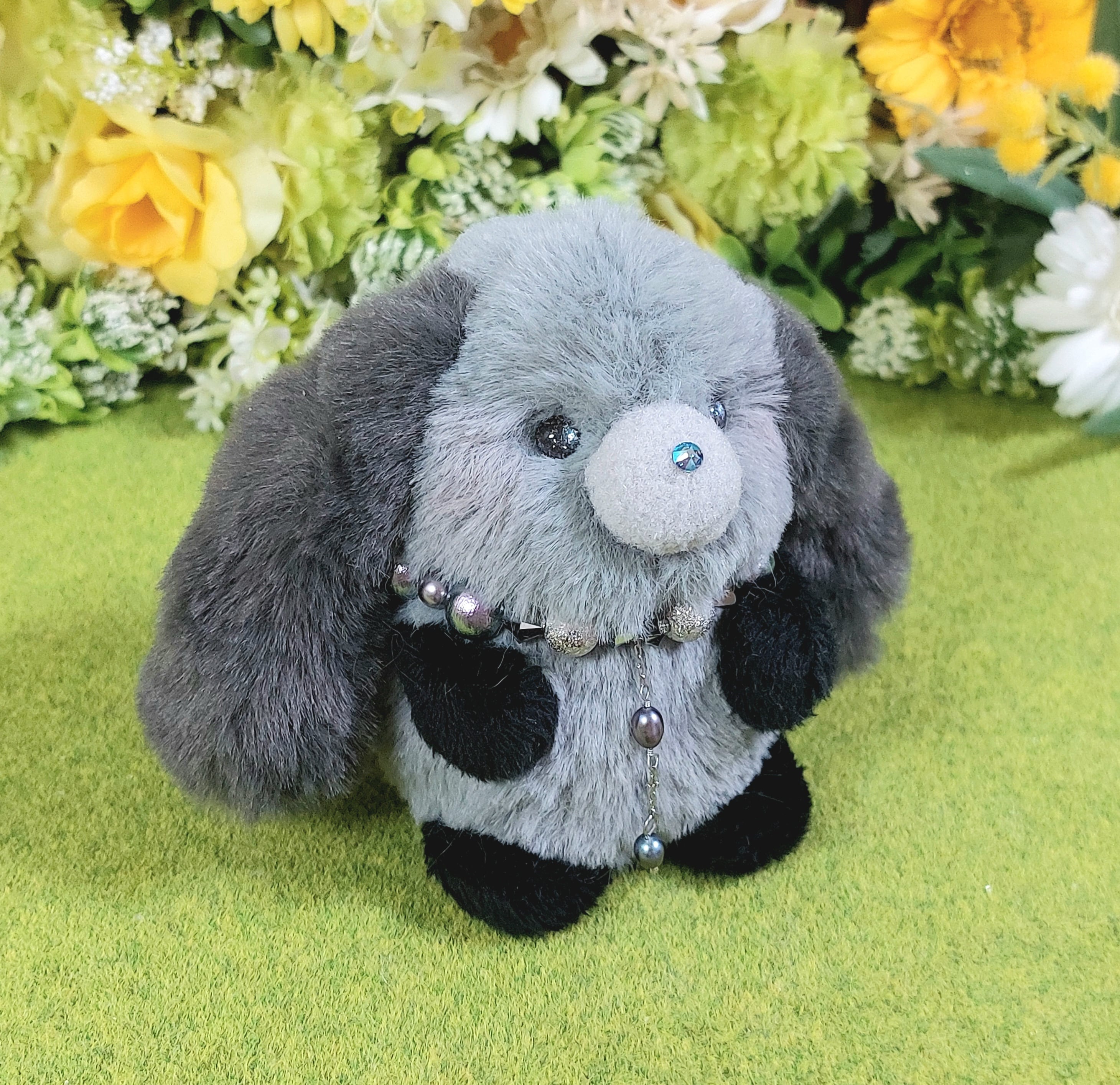 素材…ファー生地、ポンポンパーツ、ラインストーン、オリジナルグラスアイ、綿、プラスチックペレット