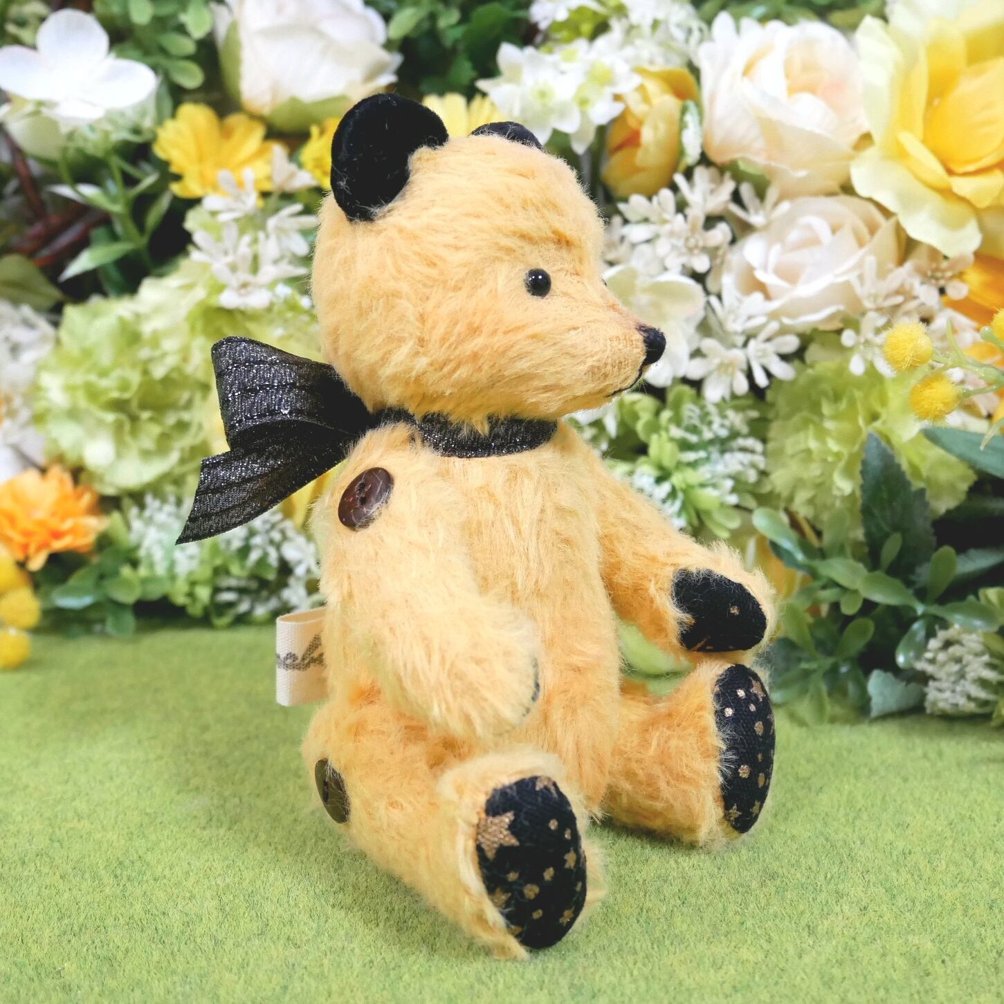 ビスコース生地をメインに、耳はミニチュアファーを使用、手足のパッドは黒地に星柄のものを合わせてお作りしました。